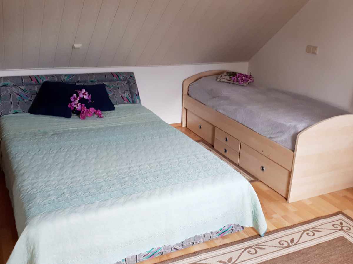 Für die Kleinen gibt es einen Sandkasten und eine große Kiste mit Sandspielzeug, Federballspielen, Tischtennisplatte usw., für die Größeren